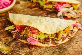 - Al pastor: Think spit-roasted pork with Middle Eastern roots, topped with pineapple, onions, and cilantro. It’s sweet, savory, and a must-try.
